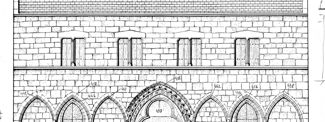 Bien que le volume ait été rétabli, la salle n’a pas retrouvé les voûtes qui la couvraient car aucun élément archéologique ne permettait de connaître leur disposition exacte.
