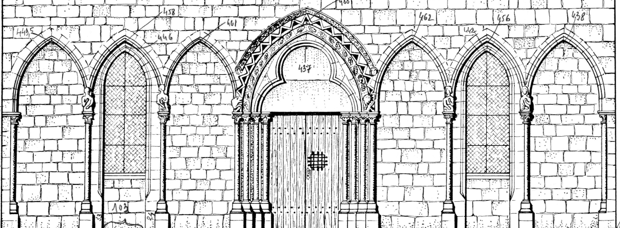 La salle d’accueil : C’est le lieu où sont reçus et hébergés les voyageurs fatigués . Cest « l’hospitalitas » dont il subsiste la façade gothique rue des Halles. Cette façade a été publié en 1857 par Verdier et Cattois[3] puis lithographié par Fichot[4] l’année suivante.